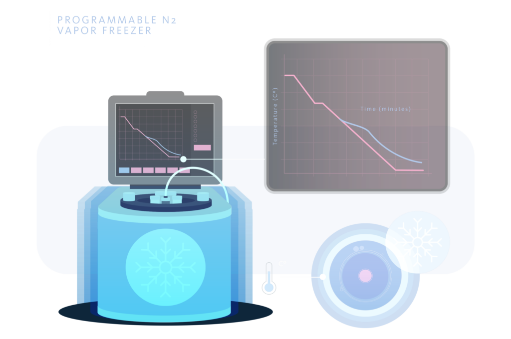Using a freezer connected to a computer, a freezing curve suitable for the type of cell to be cryopreserved can be programmed. In addition, this system allows the data of each freezing performed to be archived. These freezers usually include different types of freezing and thawing curves, as well as allowing the operator to develop his own curves with different cryogenic speeds. For all these reasons, the programmed slow freezing has a series of exceptional characteristics that we do not find in almost any other cryopreservation system. These characteristics are adaptability, traceability and reproducibility.